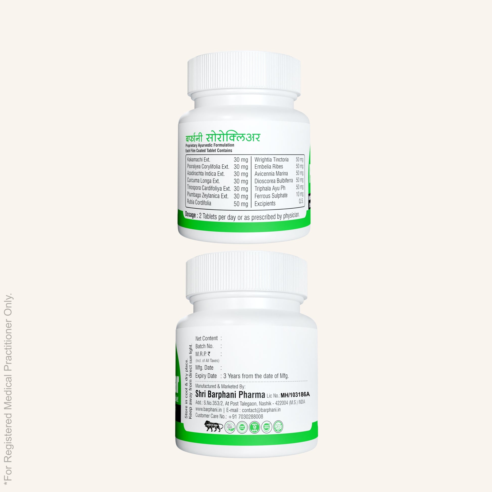 Barphani PsoroClear 60 Tabs - Instant & long term relief for Psoriasis, Scalp Psoriasis, itching, scaling, redness, dark Spots, flaking. Quick action